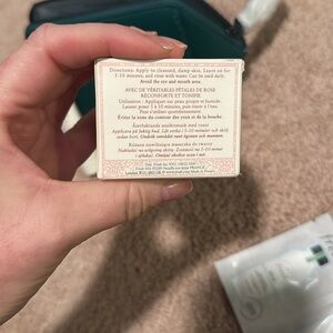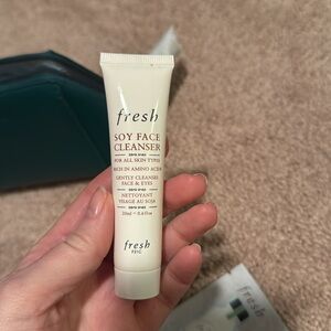 Fresh bundle. Full size Rose face mask and sample/travel size soy face cleanser plus a super cute cosmetic travel bag in a beautiful teal emerald green.