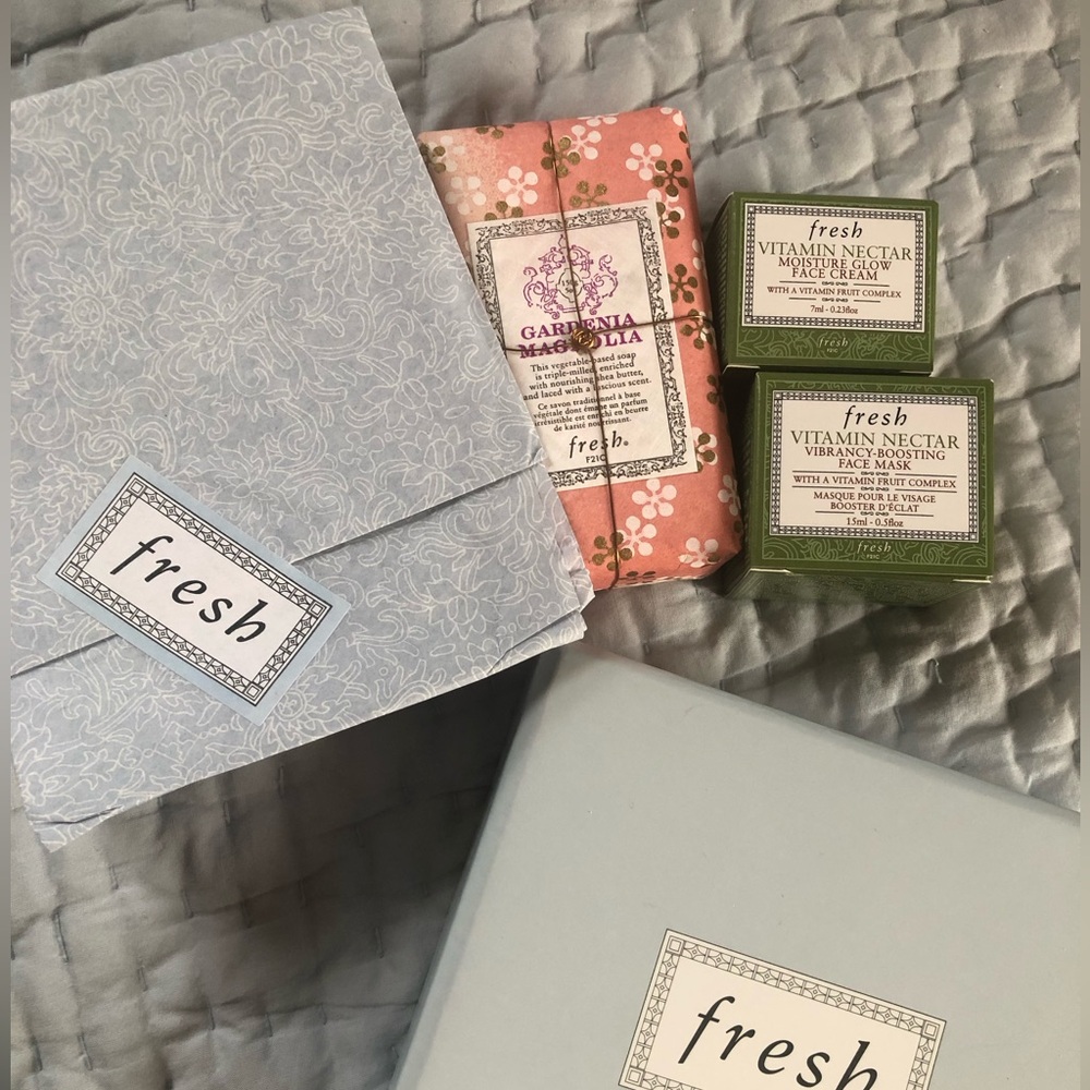 Lovely gift set from fresh - includes one bar of Gardenia soap, and sample sizes of Vitamin Nectar face glow & mask. See pics for actual contents. All in unused condition! 🩷