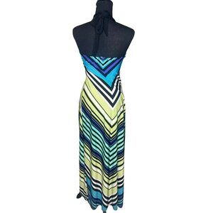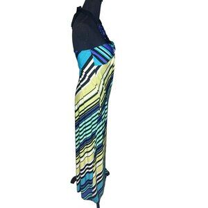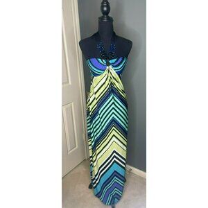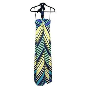 Fresh of LA Beaded Neck Striped Halter Maxi Dress Women's Small Made in USA