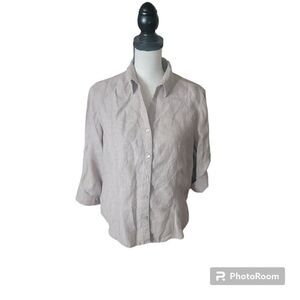 100% linen button up top with roll tab sleeves. In excellent pre-owned condition. Size S.