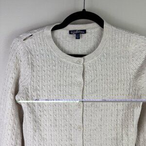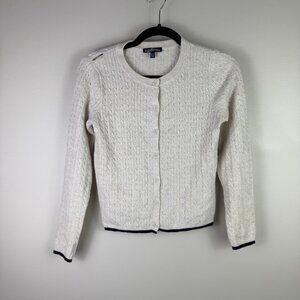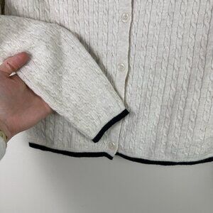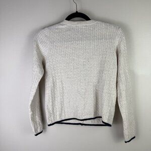 Freshman 1996 Cable Knit Cardigan Sweater L White Button Up Preppy Flaw