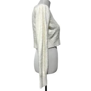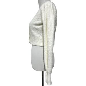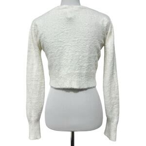 Freshman 1996 Cardigan Sweater Fuzzy White Cropped Button Front V-Neck Sz Small. Preowned. Great condition. Comes from smoke free home. Ships out fast!