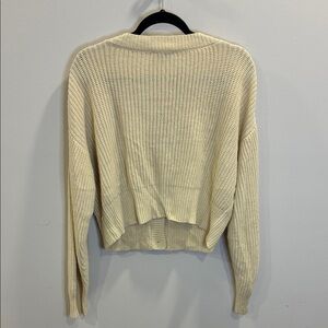 Chic cream cardigan with button closure. Ideal for layering. Soft and comfortable.
