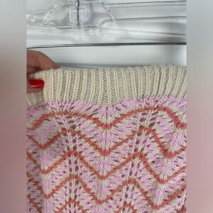 Freshman 1996 Pink & Cream Crochet Knit Chevron Pattern Mini Skirt S Women’s