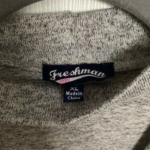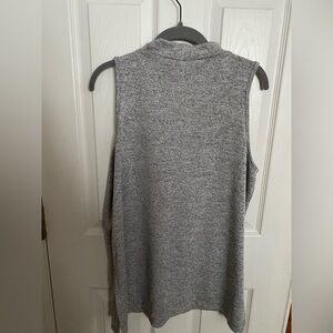 This Gray Sleeveless Sweater by Freshman 1996 has a unique neckline that comes across as a collar and is opens the into a V Neck. Great for layering or worn alone.