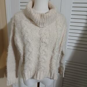 Freshman 1996 Small Cream Chunky Cable Knit Cowl Neck Sweater Cropped cozy SOFT