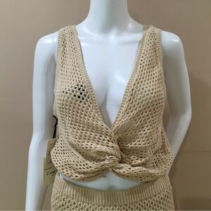 Freshman 1996 Women’s Size L 2Pcs Set Vest Top Skirt Knit Crochet Cover Up Ivory