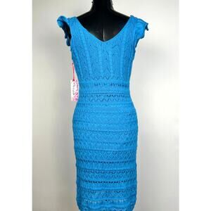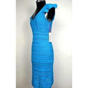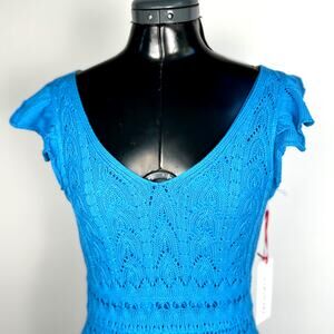 Freshman Blue Flutter Sleeve Crochet Short Dress NWT Med
