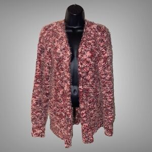 Freshman Burgundy Soft Fuzzy Variegated Boucle Open Cardigan Pocket Sweater