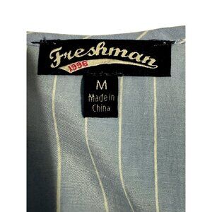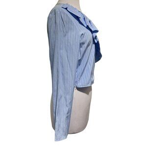 Freshman Crossover Asymmetric Ruffle Cotton Top Blue White Pinstripe LS Sz M