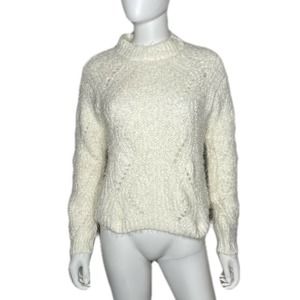 Freshman Women's White Mock Neck Pointelle Chenille Sweater sz Junior’s S