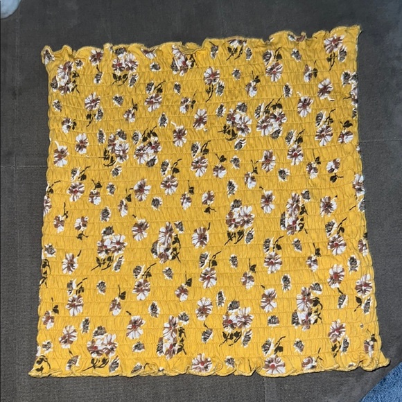 Charming yellow top with ruffled details. Perfect for a sunny day. Tube Tops are coming back in style!