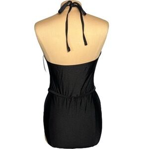 Freshwater 70's retro inspired Ruched Front-Tie One-Piece Swimsuit black