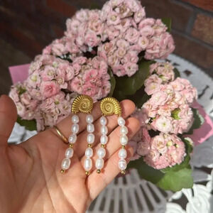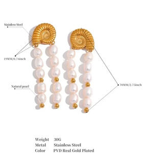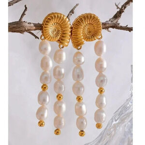 Freshwater Pearl 18K Gold Stainless Steel Waterproof Tassel Shell Earrings