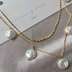 new with tags Imitation Freshwater Pearl Disc Layered Gold Necklace.