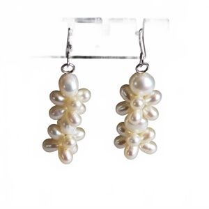 This listing is for a beautiful pair of unique, vintage dangle earrings made from clusters of creamy freshwater pearls. They have silver tone fish hook style ear wires. My mother purchased these earrings from HSN in April 1999. As with many of her things, they are like new and most likely were never worn. The earrings measure 2” long.
