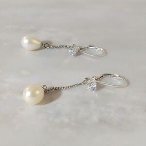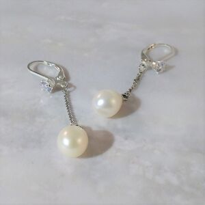 Freshwater Pearl Earrings with Simulated Diamond CZ Dangle Earrings