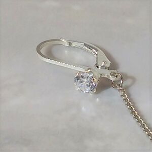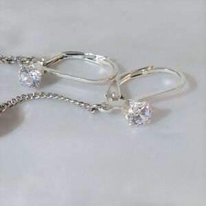 - The polished sterling silver lever backs are each set with one 4 mm round cut white cubic zirconia CZ simulated diamond.
