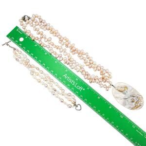 Freshwater Pearl Necklace & Bracelet Set W Large Oval Shell Pendant Sterling 925