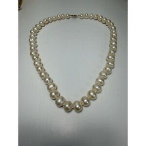 Freshwater Pearl Necklace Classic Hand Knotted Elegant Vintage 10k Claps 17"