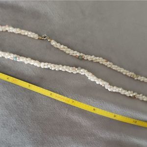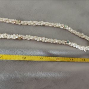 Twisted Multi Strand Freshwater Pearl Necklace with Gold Tone & Green Beads in Good Pre-Adored Condition. The Pearls are Genuine, but I'm Not Sure What the Gold and Green Beads are. Standard Spring Clasp. Please See Photos for Details and for Measurements. Happy Poshing! 😊