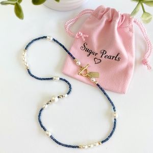 - 14K gold filled toggle clasp, beads and findings. Sugar Pearls tag is 14k gold plated