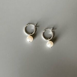 Our beautiful pearl hoop earrings are handmade using pure 925 sterling silver. A stylish, timeless accessory that makes a great gift to show somebody (or yourself ♥) that you're thinking of them. Perfect for graduations, wedding events, holidays, Mother's day, and birthdays. These huggie hoop earirngscome with a velvet jewelry pouch, ready for gifting.