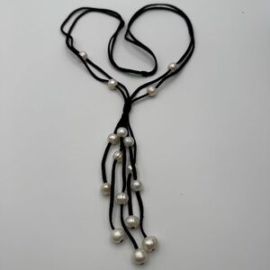 Freshwater Pearl Tassel Necklace 28” on Black Suede Cord