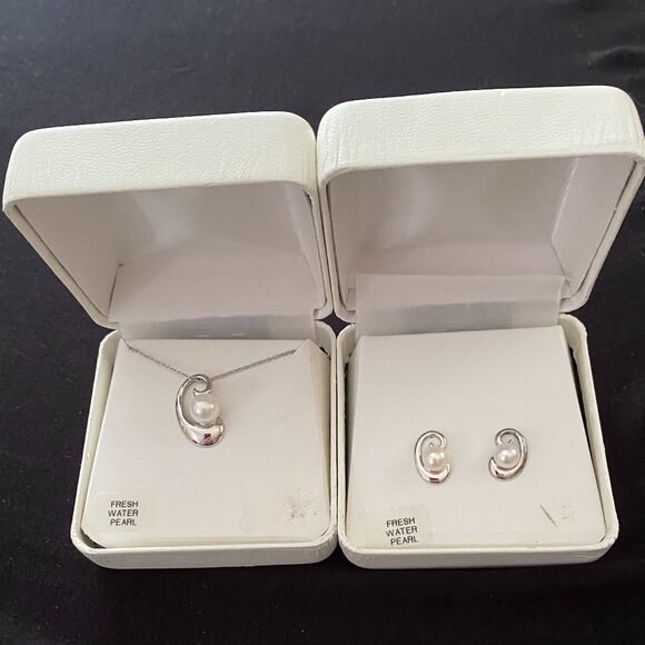 Lovely Freshwater Pearl Necklace & Earrings, Set in Sterling Silver. The necklace features an 18-inch sterling silver chain. Perfect when you are going for that