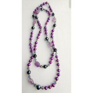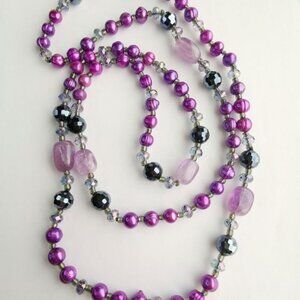 Freshwater pearl amethyst and crystal rope necklace 46" NEW