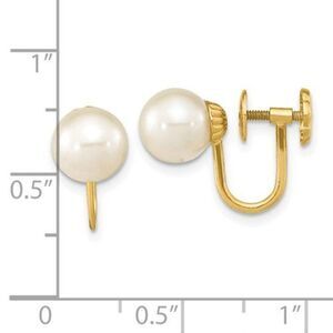 Brand new 14K 7-8mm Round White Freshwater Cultured Pearl Non-pierced or clip on Earrings. Made in Canada