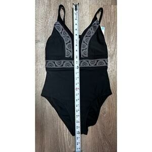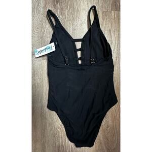 Freshwater|One Piece Swim Suit|Plunge Front/Embroidered|Black|NWT|SZ XS