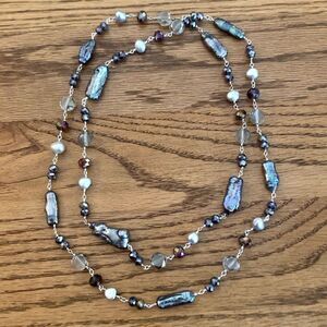 Freshwater Pearl and Crystal Beaded Necklace | 36” Length