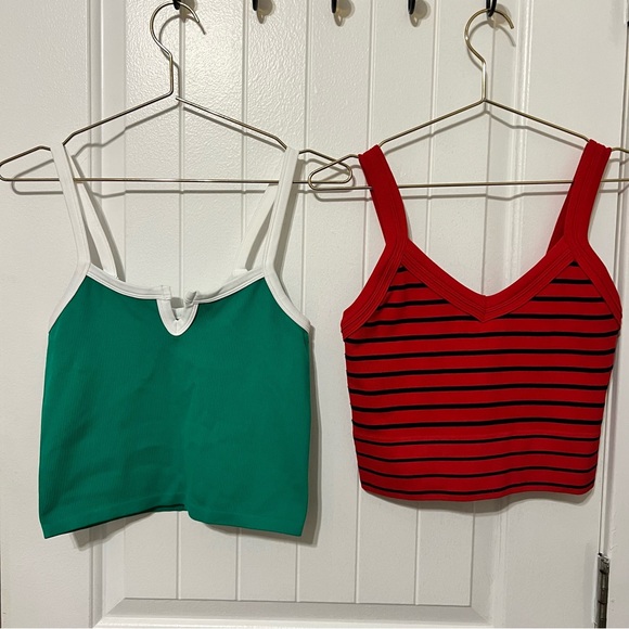 Freshwear M/L Tops Simply Green and High Risk Red Striped