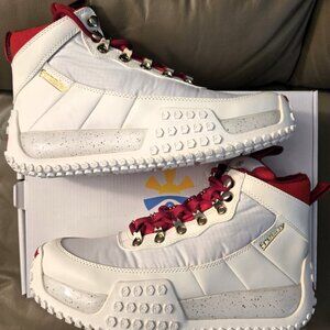 Brand new in box. Designer Brand Freshy World "Navigator" white & red "boots". These are like sneaker boots with a very comfortable & highly rubberized sole. Gold accent lace tips & front facing logos make this shoe unique. Message with questions and check other listings for combo deals.