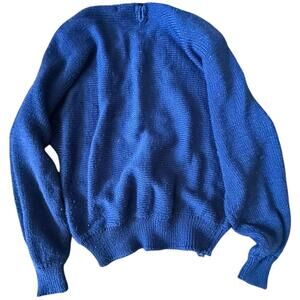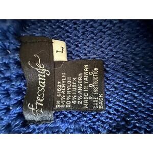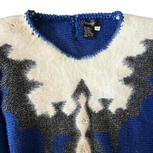 • Royal blue knit with silver metallic and white angora blend yoke design