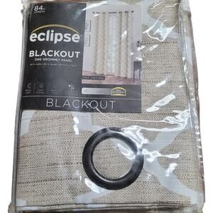 Fret Thermaback Natural Lattice Polyester 42 in. W X 84 in. L Blackout Single Grommet Top Curtain Panel Sold by the individual panel. Color: Natural GEO Pattern Panel Width: 42" Panel Length: 84" Add style and function to your décor with Eclipse Fret blackout window curtains. Eclipse curtains offer a unique blend of fashion and function for any home décor. The innovative, white foam-backing is applied to the fabric and allows you to enjoy all of the light-blocking, noise reducing and energy saving benefits, while providing the same fashionable style and elegance of naturally flowing curtains. Hang 2 or more curtain panels on a standard or decorative rod for optimal coverage and desired effect. Sold as a single panel measuring 42 in. W x 84 in. L Texture fabric Decorative grommets 1 panel Hang multiple panels for wider windows Machine washable Noise reducing