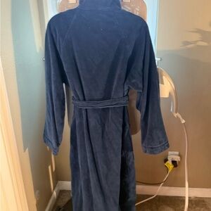 Elegant midnight blue robe by Frette. Features a soft texture and classic design. Washed but never worn