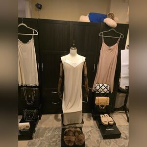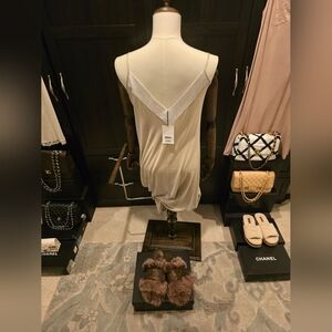 Frette New w/Tags Spring 2024 Long Nightgown Pajamas Beige/ White Satin