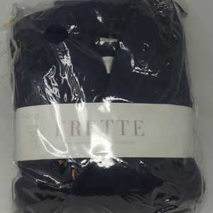 Frette Turkish Terry Shawl Collar Spa Robe, Unisex, Size L/Xl, Made In Turkey, Navy Blue. This luxurious robe is still packaged and sealed in original packaging. I believe I purchased while on vacation and staying at a luxury hotel chain. Frette is a luxury brand. Turkish terry robes actually Made in Turkey are hard to find. Price is firm.