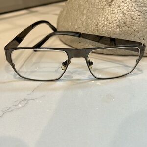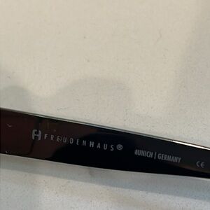 This is a great pair of Freudenhaus Munich Germany Titanium Gun 53.5 - 17 140 Men’s Glasses. There is a small prescription in the glasses but obviously you can get that easily switched out to what you need. No cracks.