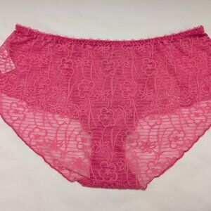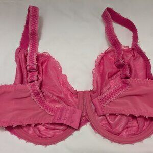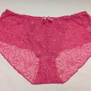 Pretty pink "Barbiecore" bra with cute bow and rose details on the center gore and straps. Floral lace unlined bra and panty matching set. Panty is model # AA4106BUU size M, kind of a hipster or shorty style.