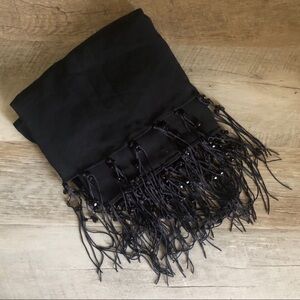 Freya Black Beaded Fringe Sheer Lightweight Evening Scarf Wrap Shawl
