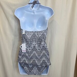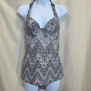 Keywords: Freya, tankini, swimsuit, halter top, snakeskin print, swimwear, 32G, M, black and white, beachwear, poolside, vacation, new with tags, women's swimwear, designer swimwear