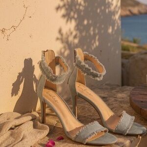 Freya Blue Denim Ankle Strap Heels