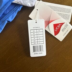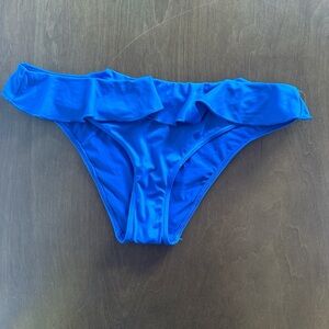 Stylish blue bikini bottom with ruffle detail. Perfect for a chic beach look.