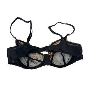 Freya Plunge Balcony Bra Black Mesh Pink Green Floral Lingerie - Size Medium