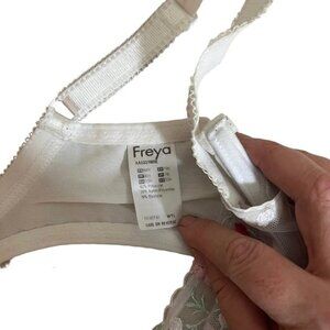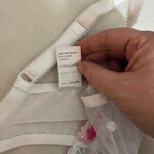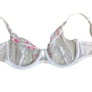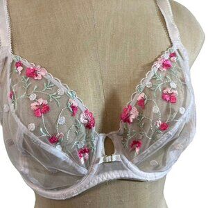 Freya bray women's 32H white sheer mesh pink embroidered flowers unlined