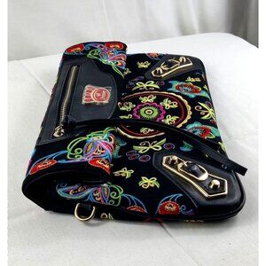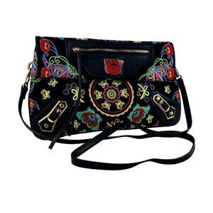Fricaine Black Treasure Clutch Crossbody Luxury Boho Exotic Embroidered Flowers