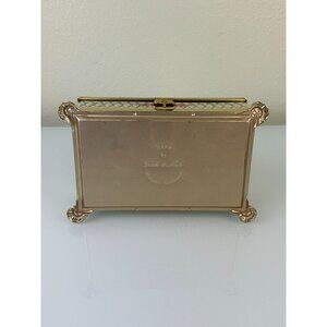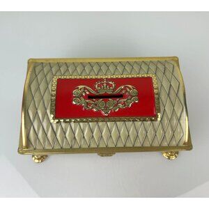 Fricke & Nacke Metal Tin Coin Trinket Box Western Germany Red Gold Tone Vintage